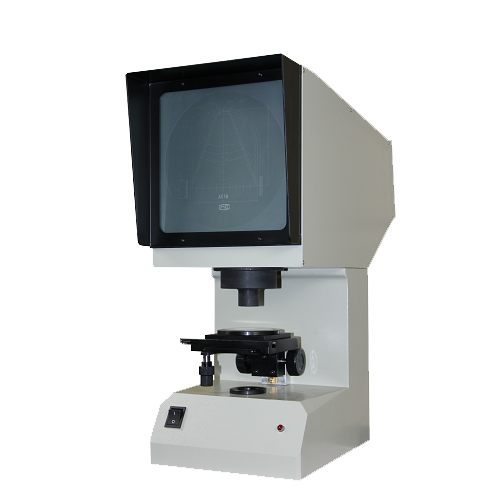本投影儀光源發(fā)出的光線經(jīng)聚光鏡照射到被測物體,再經(jīng)物鏡將被照射物體放大的輪廓投射到投影屏上。根據(jù)需要,本儀器為單一投射照明,光源通過一系列光學(xué)元件投射在工作臺上,再通過一系列光學(xué)元件將被測試樣缺口輪廓清晰的投射到投影儀上。物體經(jīng)二次放大和二次反射成正像,在投影屏上所看到的圖形與實際試樣放置的方位一致。